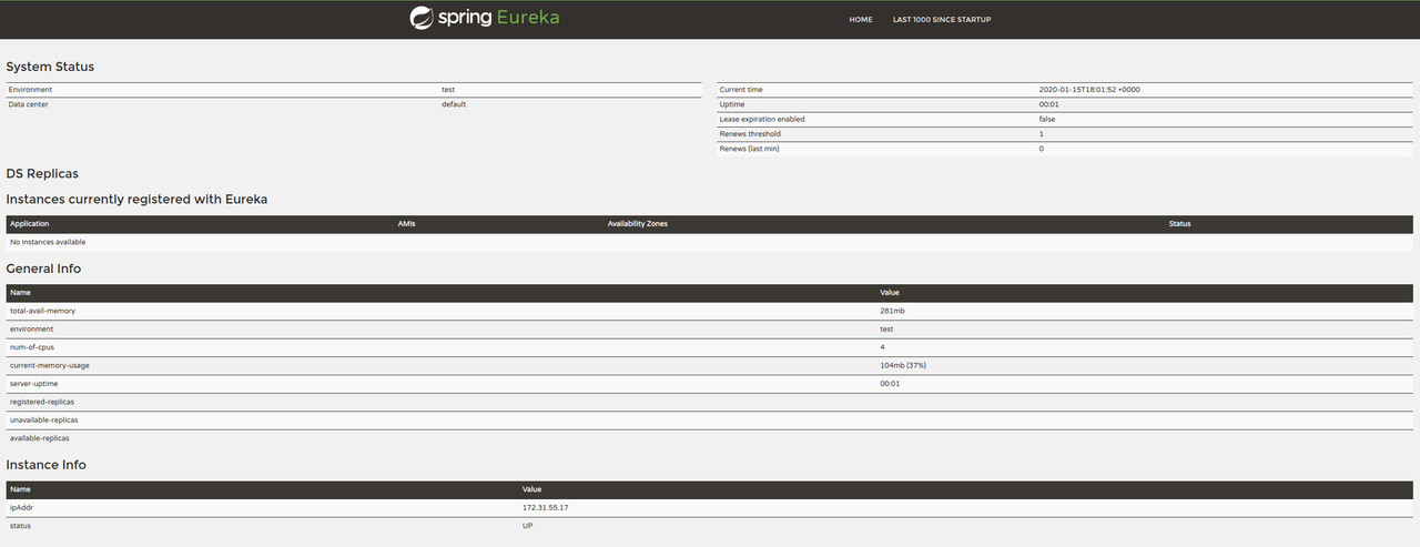 The registry respond to this url: http://127.0.0.1:8761/peav-api-registry/ peav-api-registry is the context name under jboss eap 7.1 This is the page: link